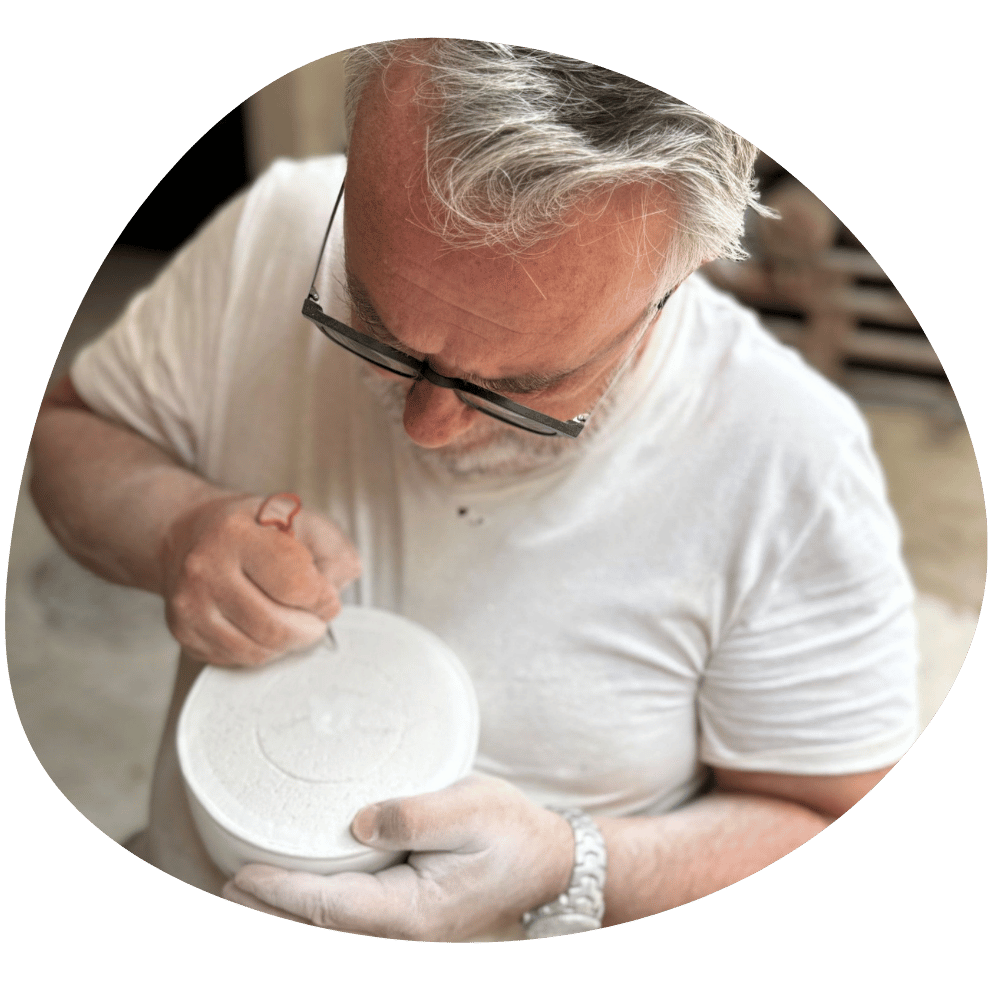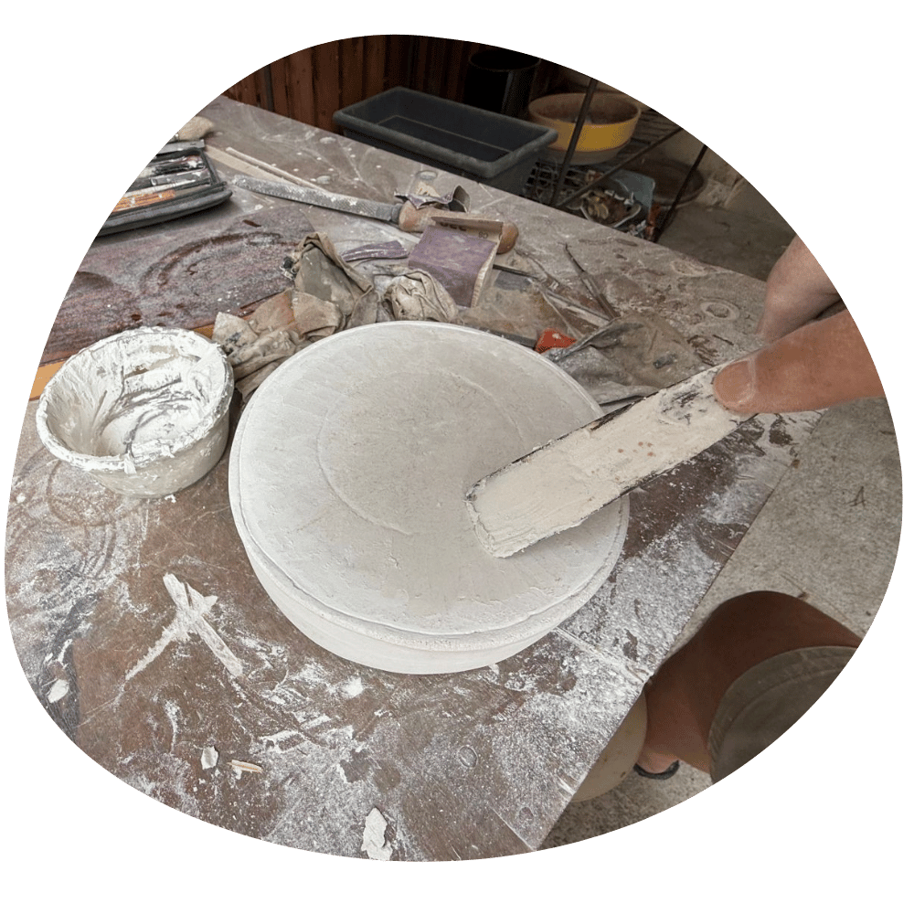 À partir de ce matériau brut naît une première forme, encore imparfaite, mais déjà porteuse d’intention.
